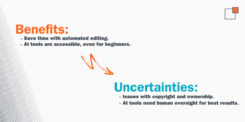 It’s also important to note that AI isn’t always consistent, and any work edited with AI should still be reviewed and fine-tuned by human editors to ensure quality and accuracy. Ultimately, navigating AI-assisted video editing requires a careful balancing act between innovation and regulation.