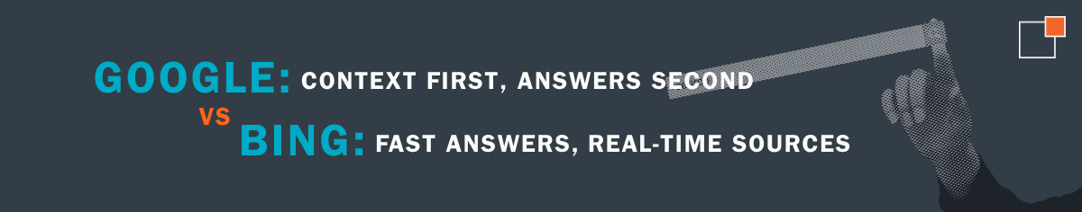 User interaction: Bing invites a conversation while Google offers quick takeaways layered into traditional results